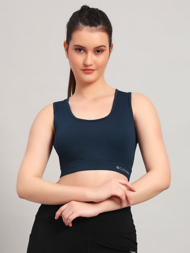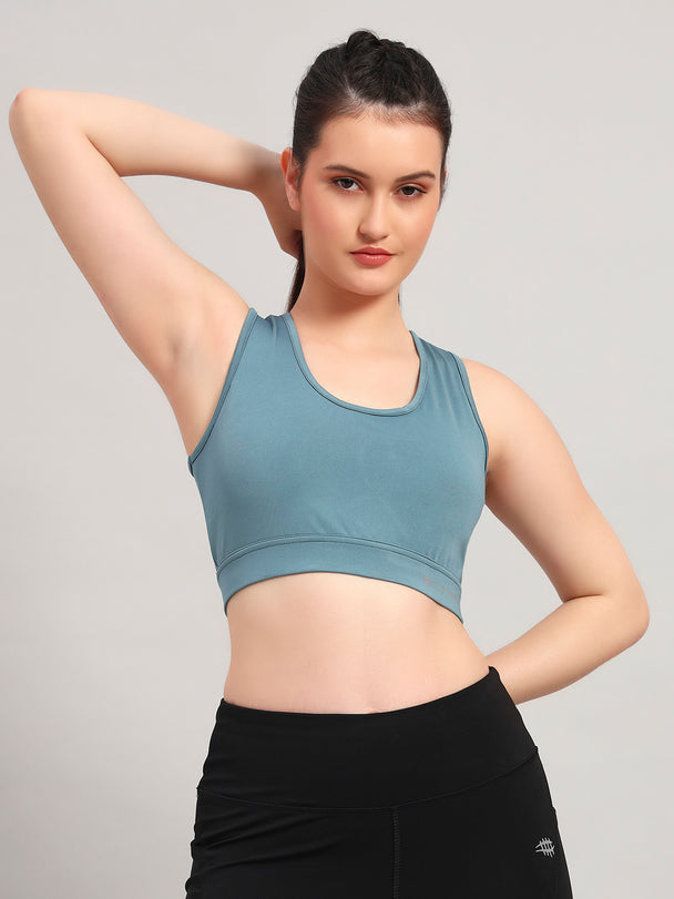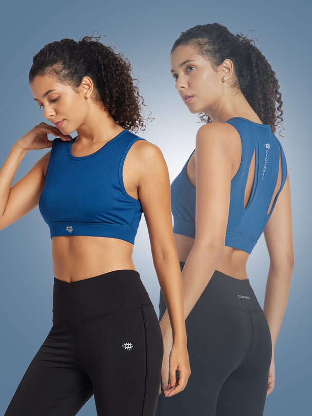 Nylon Back Design Sports Bra – Blue