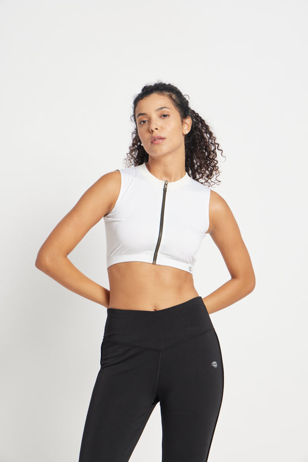 Nylon Front Zip Sports Bra – White
