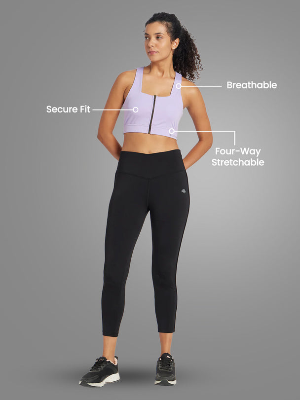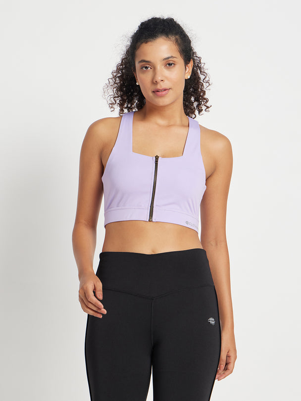 Nylon Front Zip Sports Bra – Purple