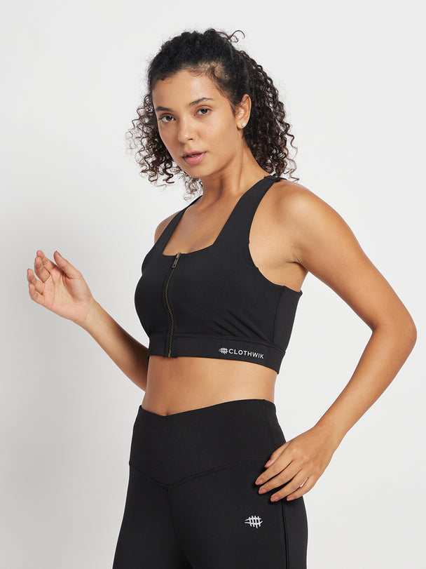 Nylon Front Zip Closer Sports Bra – Black