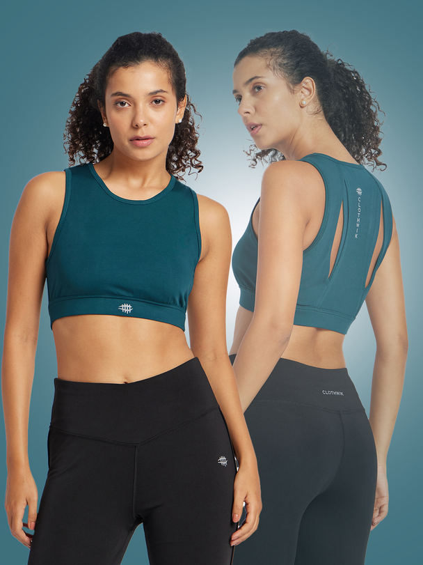 Nylon Back Design Sports Bra – Royal Green