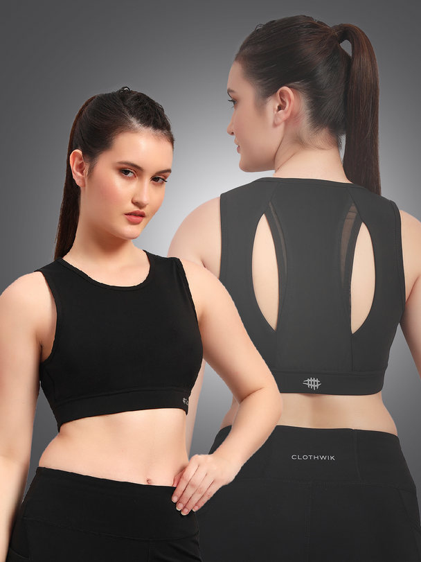 Nylon Back Mesh Sports Bra – Black