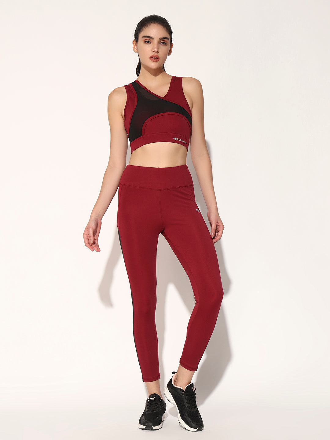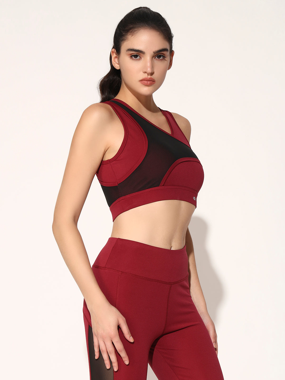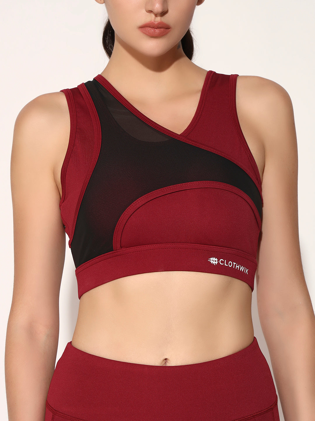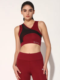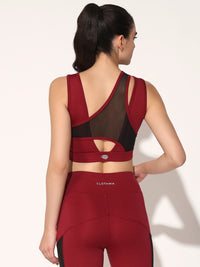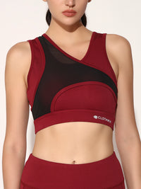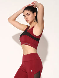 NYLON WOMEN FORNTCROSS MESH SPORTS BRA - MAROON