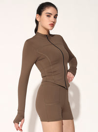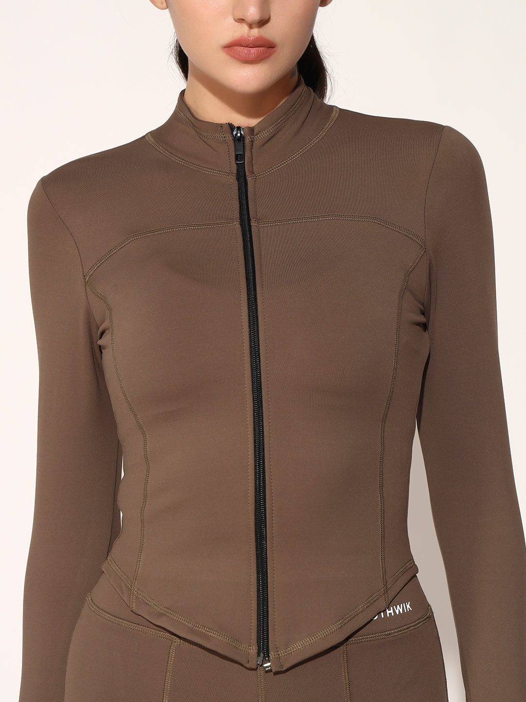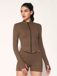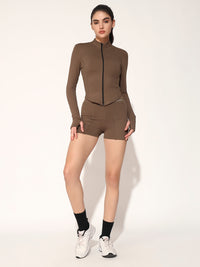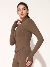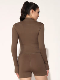 NYLON WOMEN WORKOUT FITTED SWEATSHIRT - BROWN